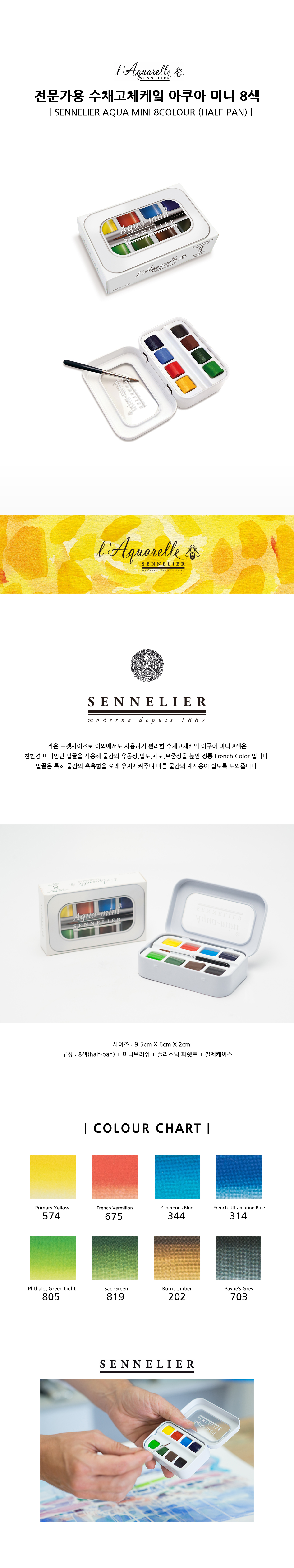 N131618 시넬리에 전문가용 수채고체케잌 아쿠아 미니 8색