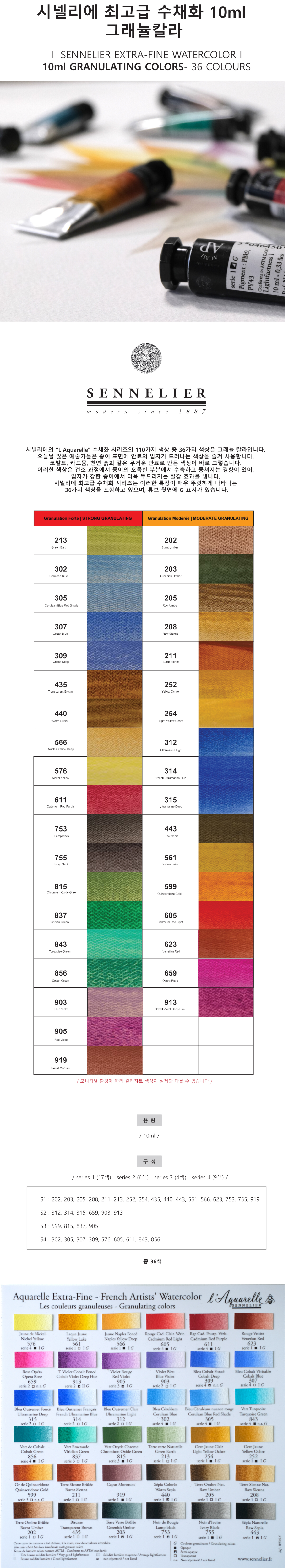 시넬리에 전문가용 수채화 10ml 그래뉼칼라-36색